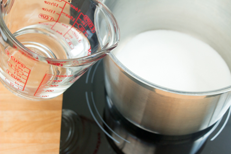 1. Combiner dans un chaudron l’eau et le Sucre Granulé Redpath®. Porter à ébullition en remuant pour faire dissoudre le sucre.