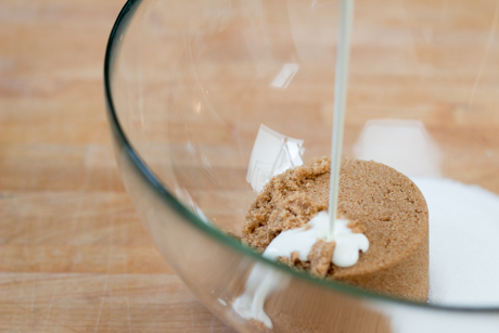 Dans un bol allant au micro-ondes, mélanger les sucres et la crème, en remuant ensemble pour combiner.