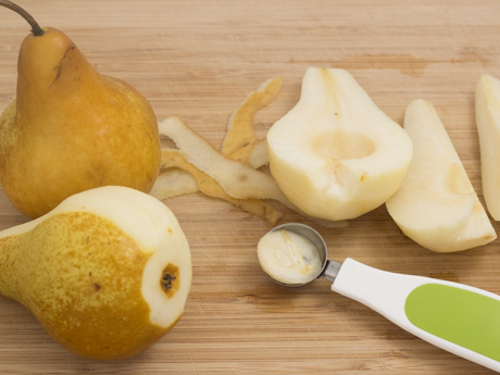 3. Préparer une assiette avec des papiers essuie-tout. Couper les prunes en deux à l’aide d’un couteau d’office et délicatement retirer le noyau. Couper ensuite en fines tranches de ¼ po (6 mm) et déposer sur le papier essuie-tout afin d’absorber l’excédant d’eau.