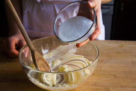 3. In a separate bowl, cream together the butter and sugar until light and fluffy.