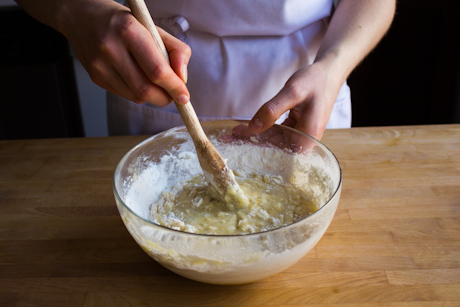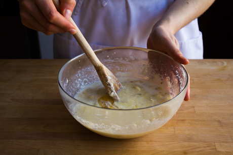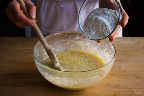 5. Add the dry ingredients to the wet, and stir until just combined.