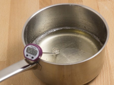 2. In a medium saucepan, over medium-high heat, combine water, light corn syrup, Redpath® Granulated Sugar, vinegar, and salt. Stir until sugar dissolves. Bring mixture to a boil, without stirring, until a thermometer reaches between 250℉ to 260℉ (121℃ to 127℃), about 5 to 7 minutes. Remove saucepan from heat.