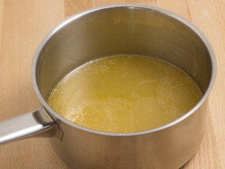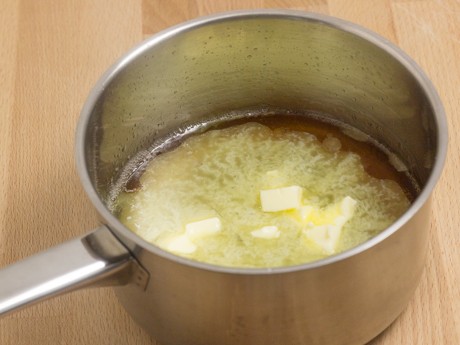 3. Add butter and extracts to the sugar mixture, stir until butter is completely melted and extracts are thoroughly incorporated.