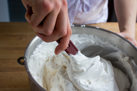 1. Place bowl of stand mixer and whisk attachment into freezer to chill.