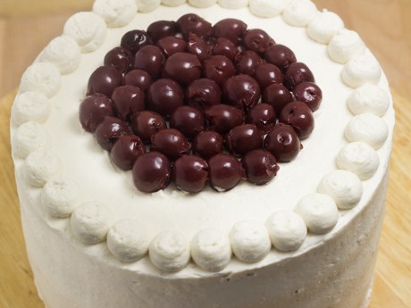 For a more adults-only black forest cake, drain (and reserve) some of the syrup from the jar of cherries, and add in ½ cup of kirsch or rum to cherries, stir and let soak overnight.
