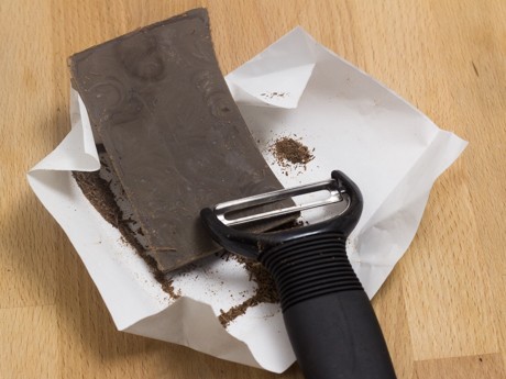 12. Decorate the middle of the cake with rings of drained cherries. Pipe dots or rosettes along the edge. With a vegetable peeler shave the dark chocolate. Sprinkle desired amount of shaved chocolate in between the cherries and piped dots or rosettes. Set in fridge for at least 30 minutes, preferably several hours, before serving to allow flavours to meld and for the whipped cream to set up.