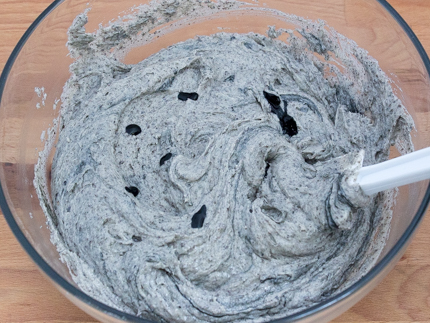 For a more dramatic black cake colour, add a few drops of black food colour to the batter and fold in.
