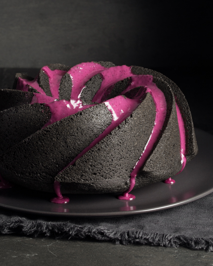 Black Sesame Bundt Cake with Grape Glaze
