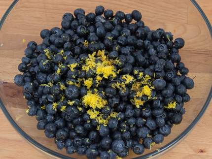 Place fresh blueberries in a large bowl, toss with the fresh lemon or lime juice, and vanilla extract.