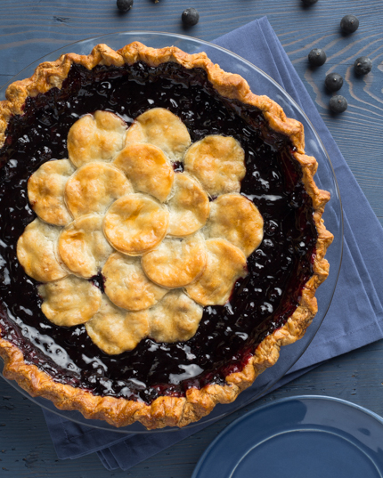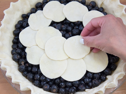 Transfer the blueberries into the prepared pie dish. Arrange the cutouts about a half-inch away from the crimped edges in concentric circles, overlapping the edges slightly.