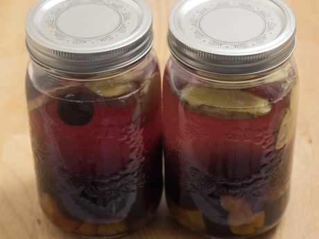 - Use any other fruit in place of the cherries - berries, peaches, apples, mango or combinations of fruit, as long as the jar is filled about ¼ to 1/2 full with fruit.