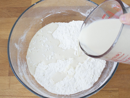 Pour the buttermilk mixture into the dry ingredients. With a rubber spatula, mix until just combined; do not overmix or the shortcake will be tough.