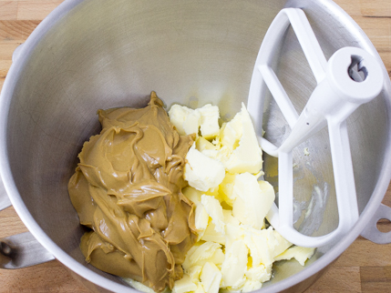 - In the bowl of a stand mixer, using the paddle attachment, cream the peanut butter with the butter until thoroughly combined and smooth.
