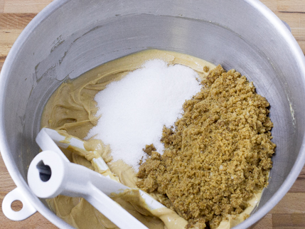 - Add the Redpath® Dark Brown Sugar and the Redpath® Granulated Sugar to the creamed peanut butter mixture. Cream on medium speed until fluffy and lightened in colour; about 3 minutes.