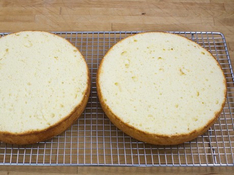 9. Run a paring knife around the edges to loosen the cakes, removing from pans to cool completely.