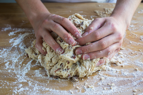 4. Turn the dough out onto a lightly floured surface. Knead gently just until the mixture comes together.