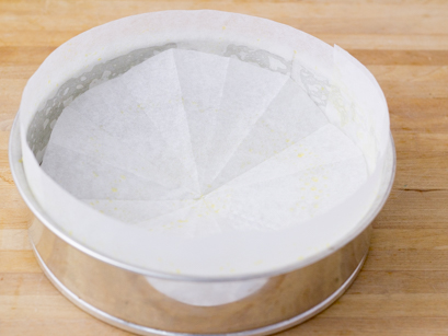 2. Spray a 9" springform pan with cooking spray. Line bottom and sides with parchment paper.