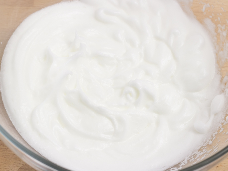 4. Clean the beaters and, in a separate bowl, beat the egg whites and salt on medium speed until foamy. Slowly pour in the Redpath® Granulated Sugar and continue beating until the egg whites are firm and shiny. They should hold a stiff peak when the beaters are pulled away.