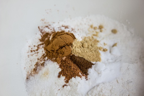 5. Whisk together the flour, baking powder, baking soda, ground cinnamon, ground ginger, ground nutmeg, ground cloves and salt.