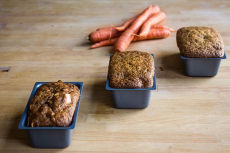 8. Pour the batter into the prepared muffin tins or loaf pan, and bake until an inserted toothpick comes out clean, approximately 15 – 20 minutes for the muffin tins, or 30 – 40 minutes for the loaf pan. Once baked, remove from the oven and let sit for 5 minutes, then remove from pan and let cool on wire racks.