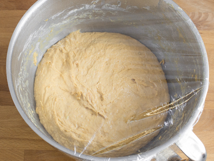 Place 1/2 cup (120 ml) of the reserved warm water (110°F to 120°F) into the bowl of a stand mixer. Sprinkle in the Redpath® Granulated Sugar and the active dry yeast. Stir to dissolve. Let stand for 5 minutes, or until foamy.