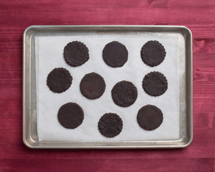 Place chilled cookies into the preheated oven and bake for 7 to 8 minutes, rotating halfway through.