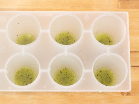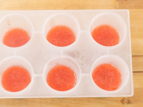 6. To un-mold, fill your sink with hot tap water, and hold the mold in the water, just up to, but not over the top edge, for a few seconds. If the frozen pops don't slide out, hold the mold in the water a little longer.
