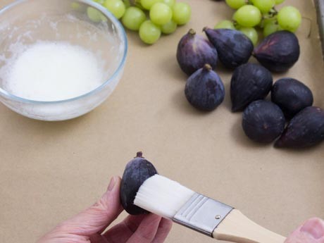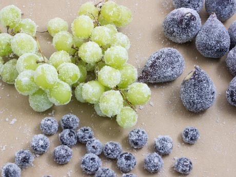 *Ensure the fruit and berries that are to be frosted are completely dried, or else the egg white and sugar will not adhere to the surface (the sugar may also start to clump or dissolve).