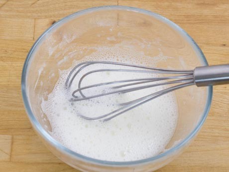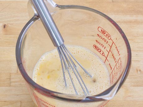 3. In a measuring cup, lightly whisk together the eggs, egg whites, and extracts until just combined. Set aside.