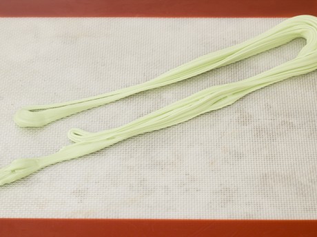 3. Pour onto a greased silicone mat or marble slab, and when cool enough to handle begin pulling with buttered hands.