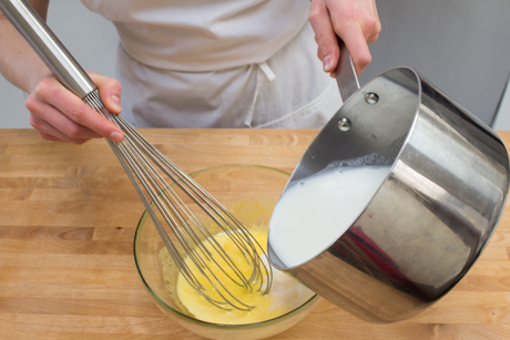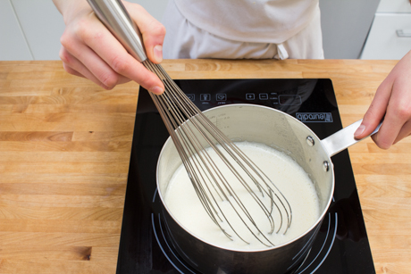 3. Meanwhile, combine the cream and Redpath ® Icing Sugar in a medium saucepan and bring it just to a boil. Keep stirring to dissolve the icing sugar. Once the cream is very hot, remove the saucepan from the heat and stir in the gelatin and yogurt mixture. Continue stirring until the gelatin has completely dissolved. If necessary, return the saucepan to low heat and continue stirring until you no longer see any gelatin particles. Lastly, stir in the vanilla extract or paste or pods you have chosen to use.