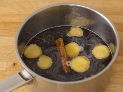 1. In a medium pot, bring the water, Redpath ® Dark Brown Sugar, ginger and cinnamon stick to a light boil.