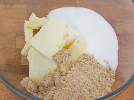 - In a separate bowl, using an electric mixer on medium, cream the butter and sugars together until pale and fluffy; about 5 minutes.