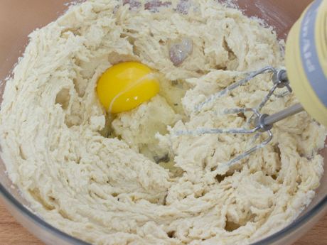 - Add eggs one at a time. Fully beat in the first before adding the second. Mix 2 minutes.