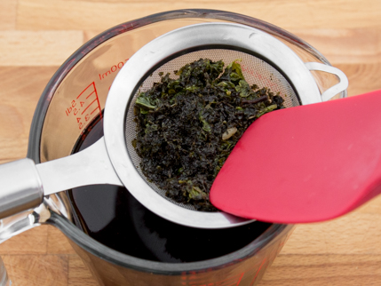 Strain syrup through a fine mesh sieve, pressing the solids to extract all the liquid. Discard the solids.