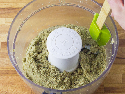 - Process the almonds and seeds. Scrape down the bowl a few times to ensure that the almonds and pepitas are getting mixed.