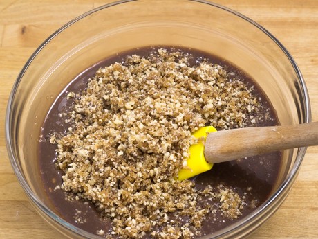 8. Stir in the hazelnut-sugar mixture until well blended. Place into the fridge to chill and thicken slightly; about 20 minutes. Place into a piping bag and into the fridge until ready to use.