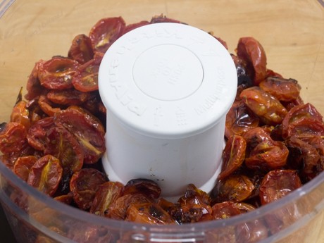 Place cooled tomatoes into a food processor. Pulse until coarsely chopped.