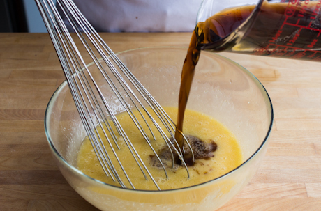 In a separate bowl, beat oil, molasses, brown sugar, eggs, and stout until combined.