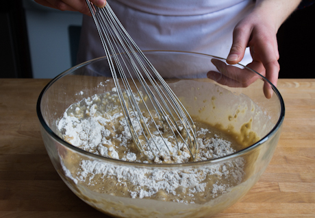 Gradually add flour mixture the wet ingredients, and mix until just combined.