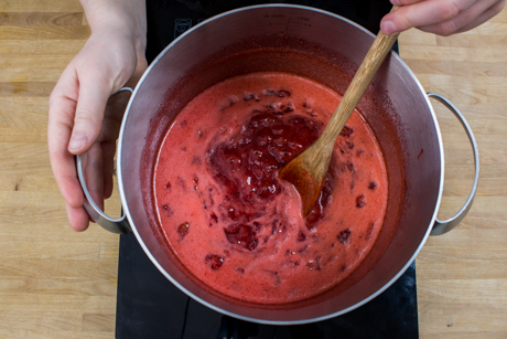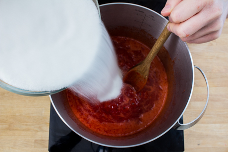 Once the mixture is boiling, add the sugar and stir in. Let boil for one minute, stirring constantly.