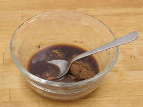1. In a small bowl, stir together vanilla and cocoa powder until cocoa powder is completely dissolved. Have a clean pastry brush ready.