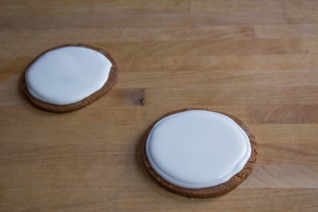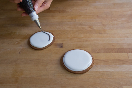 4. Using black royal icing, draw two eyes and a mouth. Let the cookies set for another 4 hours or until the icing has hardened.