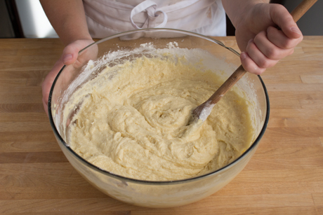 6. Alternate adding the dry ingredients and the buttermilk to the butter mixture, beginning and ending with the flour.