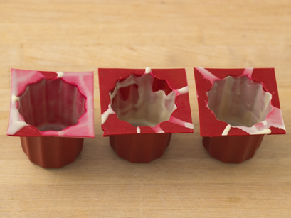 7. Remove molds from freezer and fill with batter up to one centimetre or half an inch to the top.