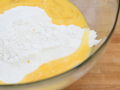 3. Using a fork, gently combine eggs and egg yolks. Do not use a whisk, only lightly combine with your fork. Remember that the batter is supposed to have zero air pockets for best results.