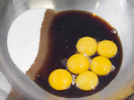 Off the heat, place the Redpath® Granulated Sugar, egg yolks, wine, and salt in the bowl.