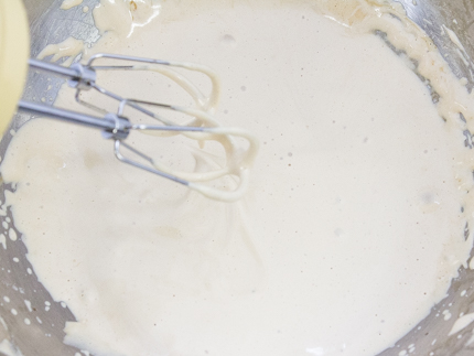 Set bowl over the simmering water and beat continuously, checking the water periodically to make sure it is not boiling. Beat mixture until it thickens to the consistency of soft whipped cream, and pools in ribbons when the beaters are lifted, about 10 minutes.